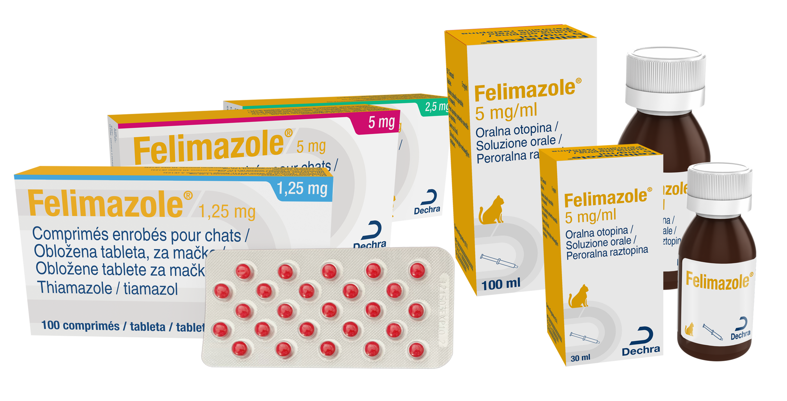 Felimazole, registriran leta 2002, je originalno zdravilo registrirano za zdravljenje hipertiroidizma pri mačkah.